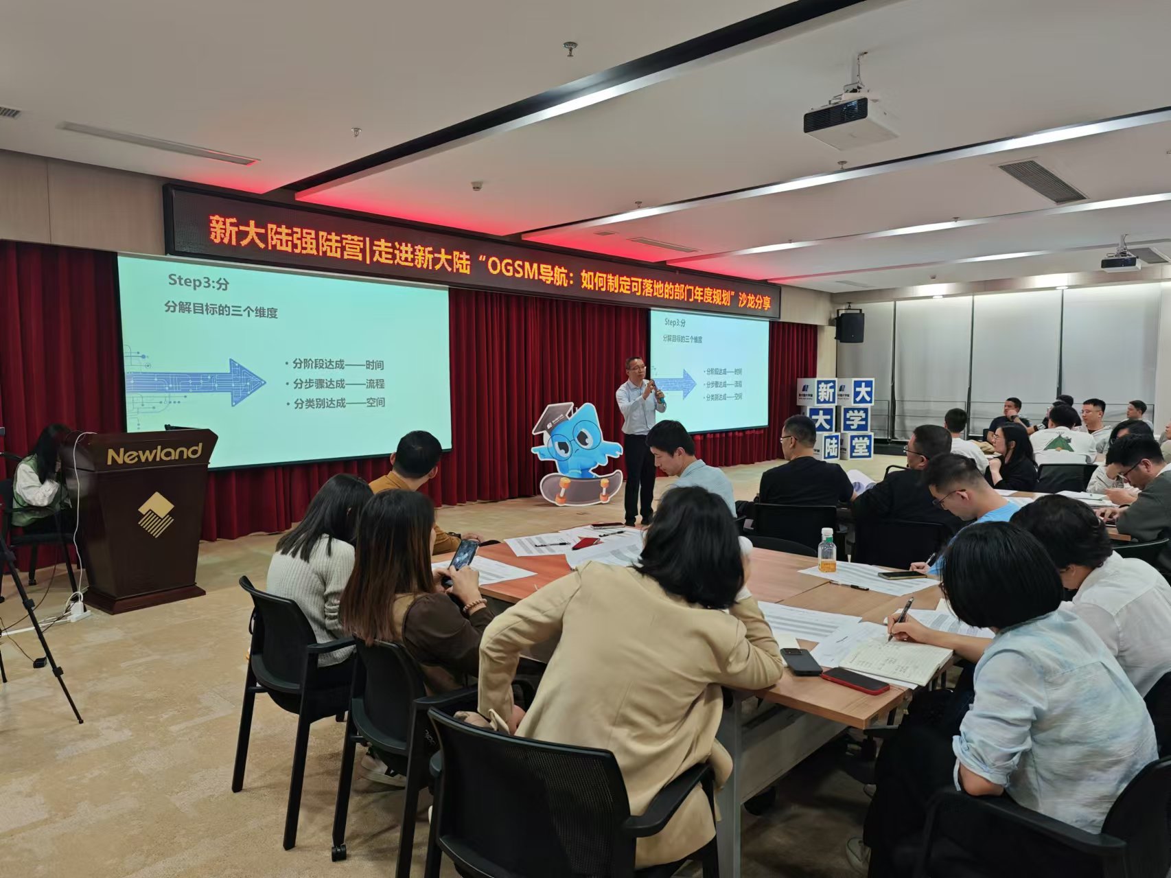 為了幫助員工深入理解戰(zhàn)略執(zhí)行的三重挑戰(zhàn),精細(xì)制定年度行動計劃,優(yōu)化運營效率,近日,新大陸強陸營“走進(jìn)新大陸——OGSM導(dǎo)航:如何制定可落地的部門年度規(guī)劃”沙龍分享活動圓滿舉行。新大陸大學(xué)堂特邀請博格管理咨詢公司副董事長饒建輝,以其在戰(zhàn)略管理和創(chuàng)新型人才發(fā)展領(lǐng)域的豐富經(jīng)驗,為學(xué)員帶來一場關(guān)于OGSM工具應(yīng)用的培訓(xùn),吸引了總部職能平臺及各經(jīng)營單位213位主管及以上人員參加。