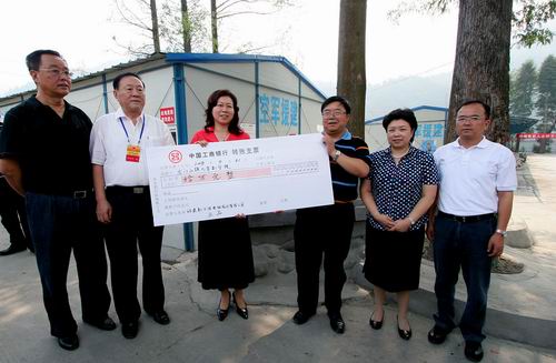 王晶、于洪代表分別向兩所災(zāi)區(qū)學(xué)校各捐10元(10萬元)現(xiàn)金,資助學(xué)校災(zāi)后重建。